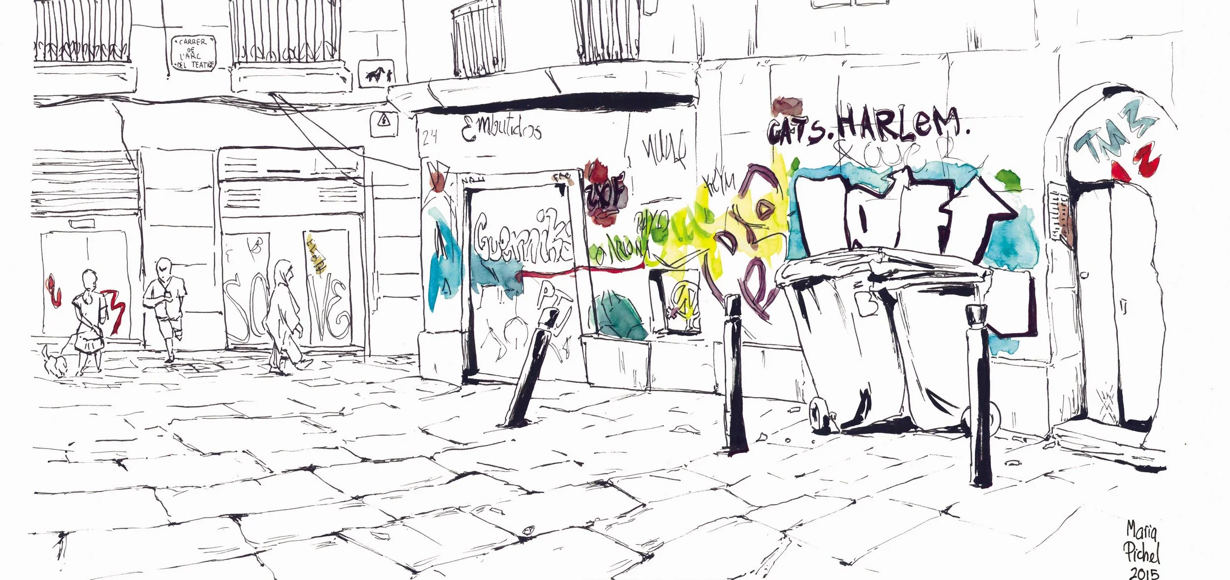 I include here some of the drawings I made during my drawing learning process with urbansketching. It’s been a long time and it shows some parts of my life as an illustrated diary, like the years I lived in Barcelona or my moving to Bristol